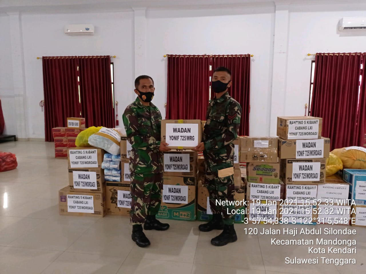 KONSEL,Sulawesbersatu.com – Melalui Korem 143/Halu Oleo, Batalyon Infanteri (Yonif) 725/Woroagi turut serta berperan dalam kegiatan penangan bencana Gempa Bumi yang melanda wilayah Majene, Sulawesi Barat (Sulbar) pada Jumat (15/1/2021) lalu, dengan menyalurkan Bantuan Sosial ( Bansos) untuk masyarakat yang terdampak bencana gempa Sulbar.