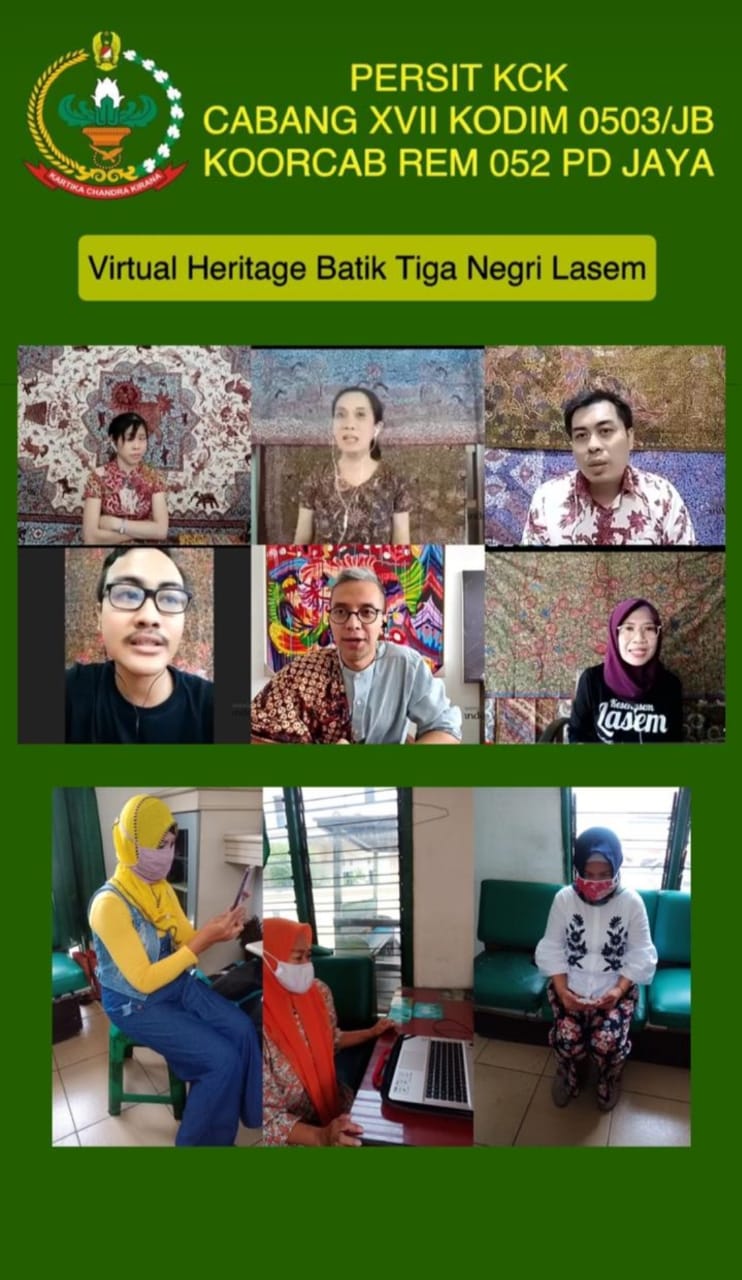 Anggota Persit KCK Ranting 6 Koramil 05/KJ Jakarta Barat dalam menyusuri atau ke ingin tauan batik yang ada di Indonesia gelar Virtual Heritage Batik Tiga Negeri Lasem pada pukul 10.00 hingga 12.00 Wib. Sabtu 26 September 2020.