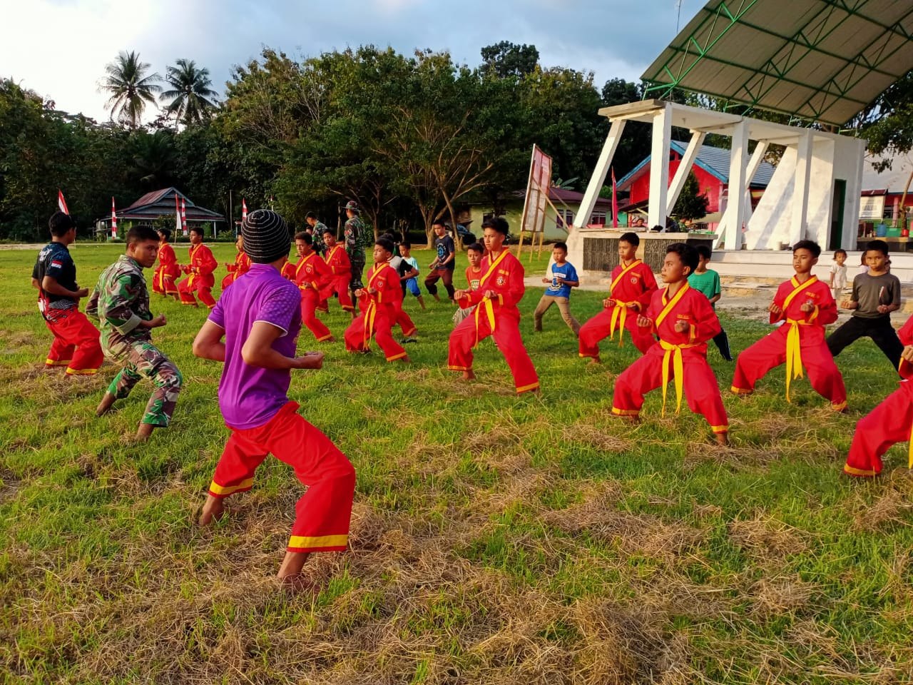 Dalam rangka mengisi waktu luang sehabis melaksanakan kegiatan, anggota satgas menyempatkan diri melaksanakan latihan bela diri bersama dengan anak-anak Desa Watalara yang sudah rutin melaksanakan latihan dilapangan sepak bola Watalara ini.