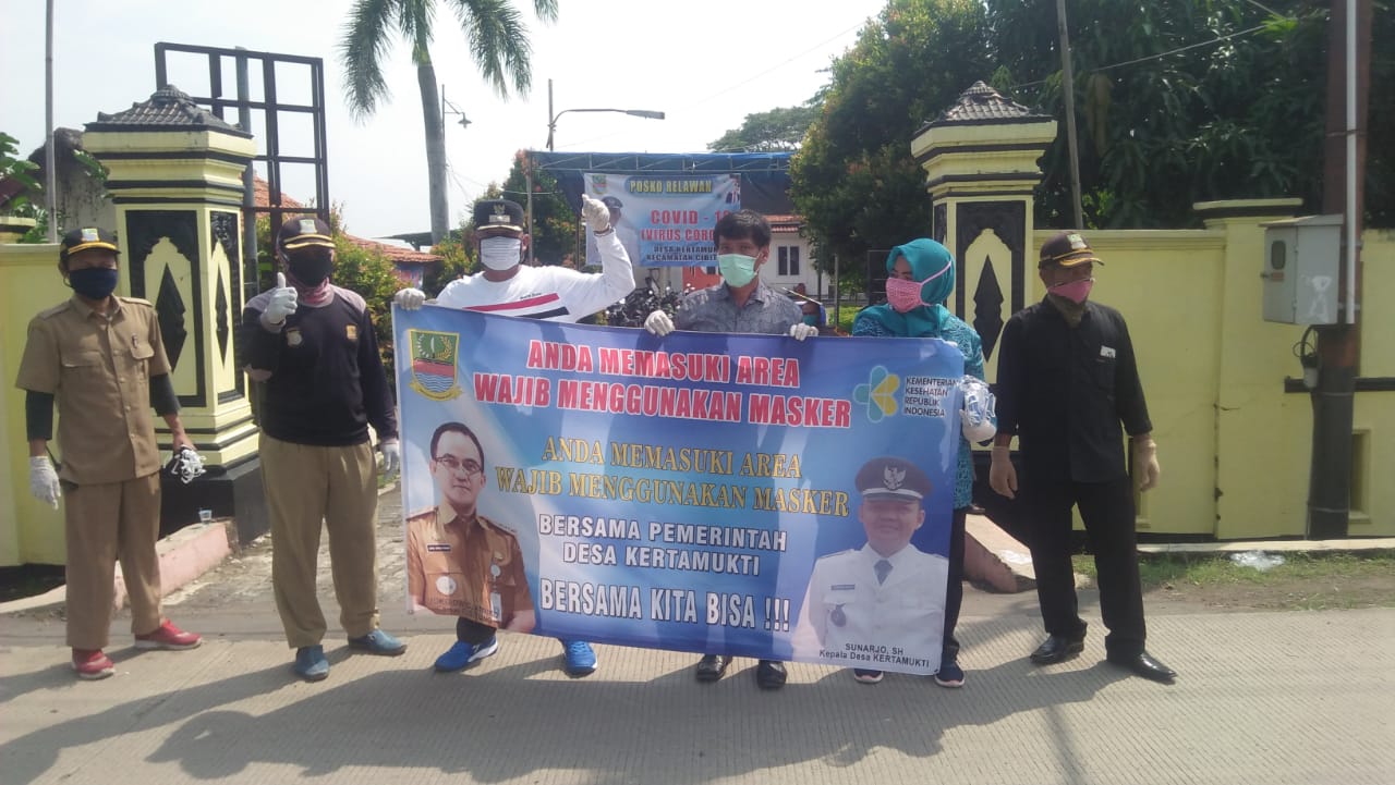 Kegiatan Pembagian masker tersebut sangat diwajibkan bagi warga yang memasuki wilayah desa kertamukti, untuk memakai masker demi menjaga kesehatan dan upaya memutus matarantai penyebaran virus corona.
