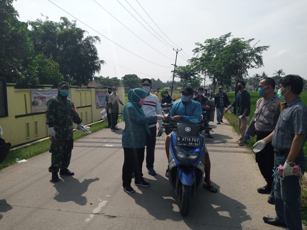 Bekasi,Sulawesibersatu.com- Pemerintah Desa Kertamukti Melakukan Kegiatan Pembagian Masker kepada para pengendara yang memasuki wilayah Desa Kertamukti tanpa memakai masker.