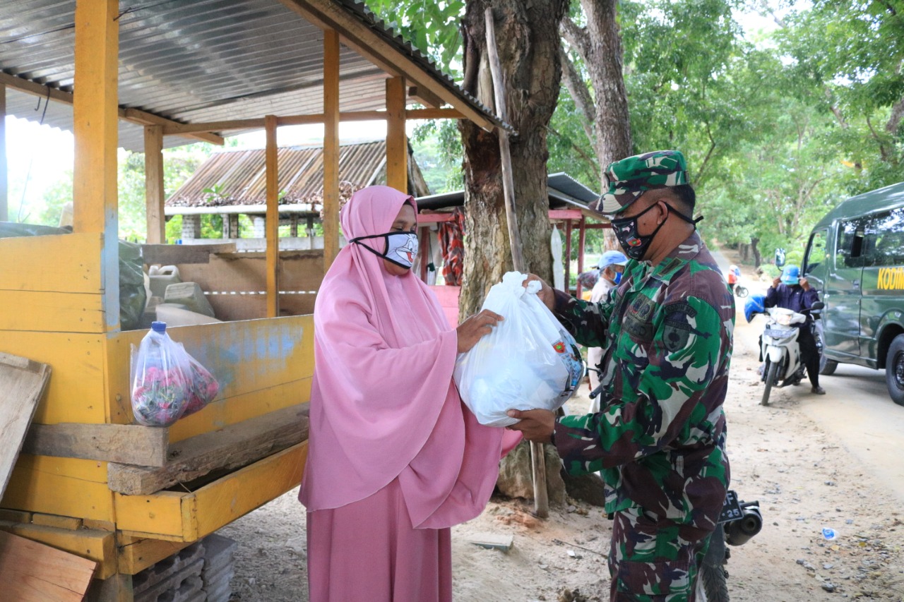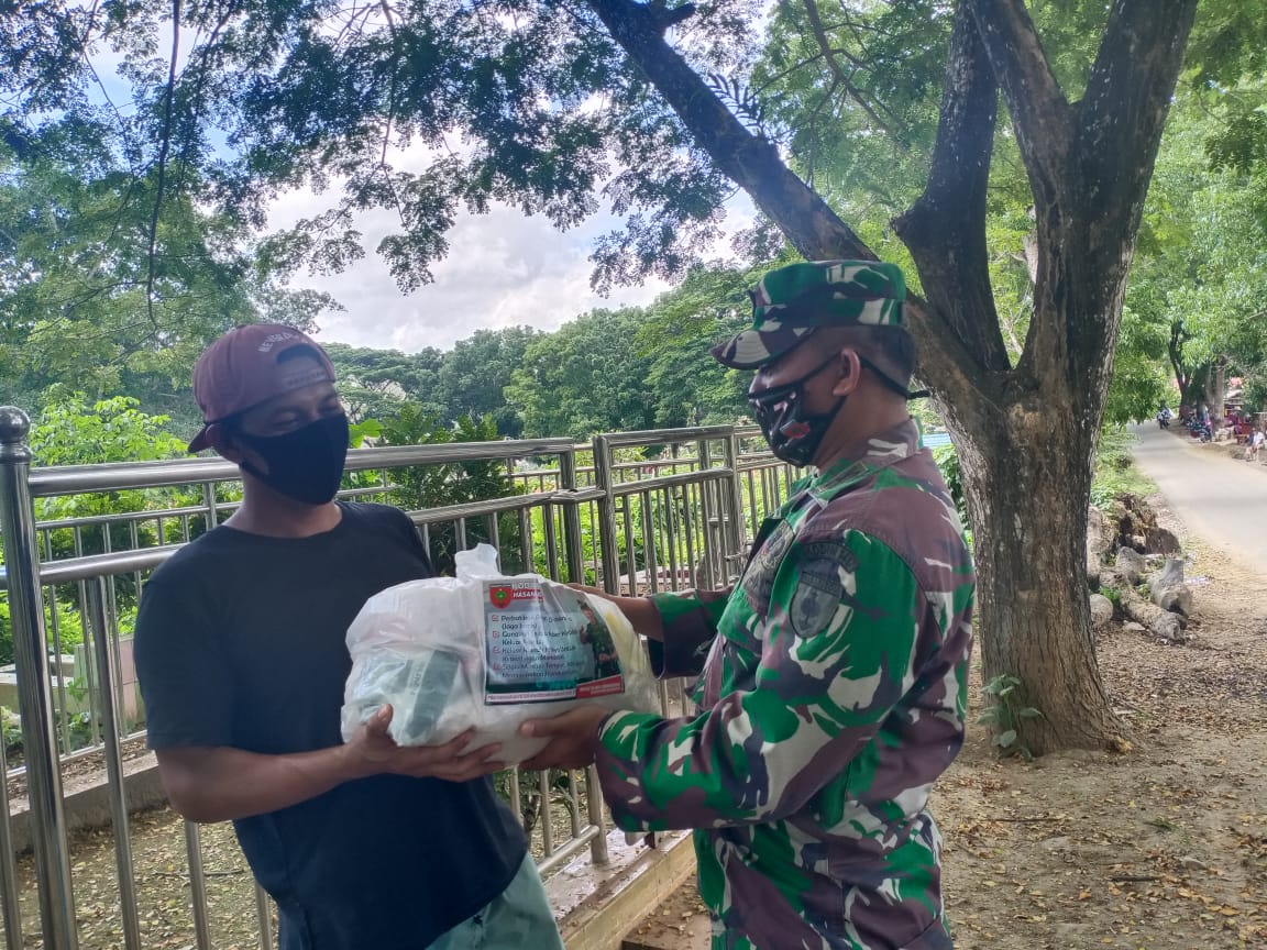 Komandan kodim 1417/Kendari Kolonel Kav Agus Waluyo, S.I.P., Diwakili Pasi Teritorial Kodim 1417/Kendari Kapten Inf Basir Ando memimpin yang langsung pembagian sembako tersebut.
