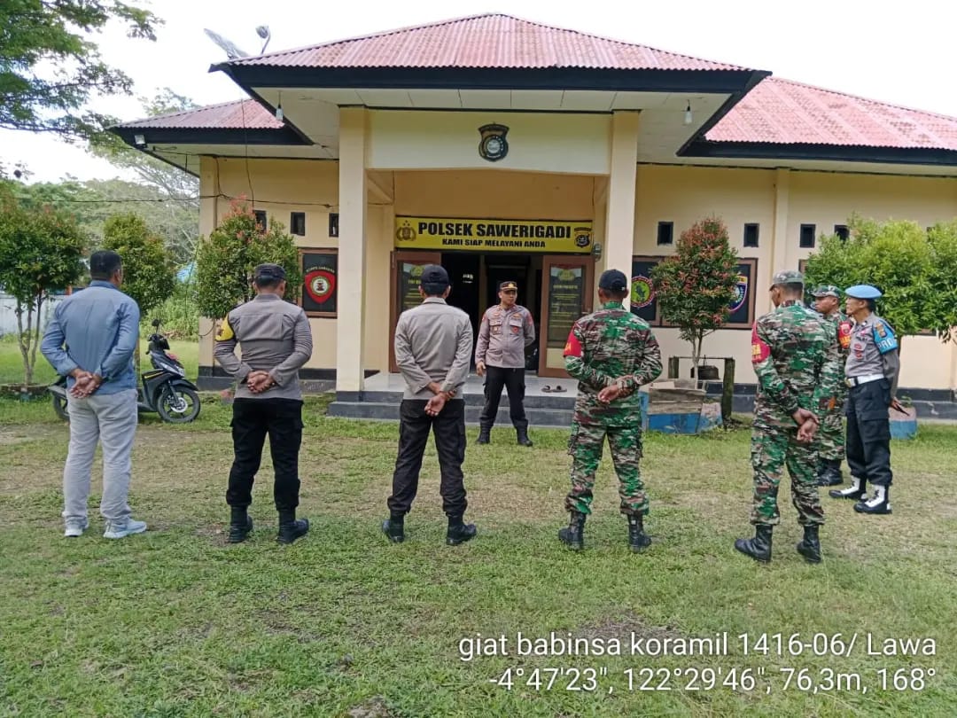 Danramil 1416-06/Lawa Kapten Inf Syaifuddin mengucapkan terima kasih kepada Kapolsek Sawerigadi bersama anggota melakukan apel sinergitas.