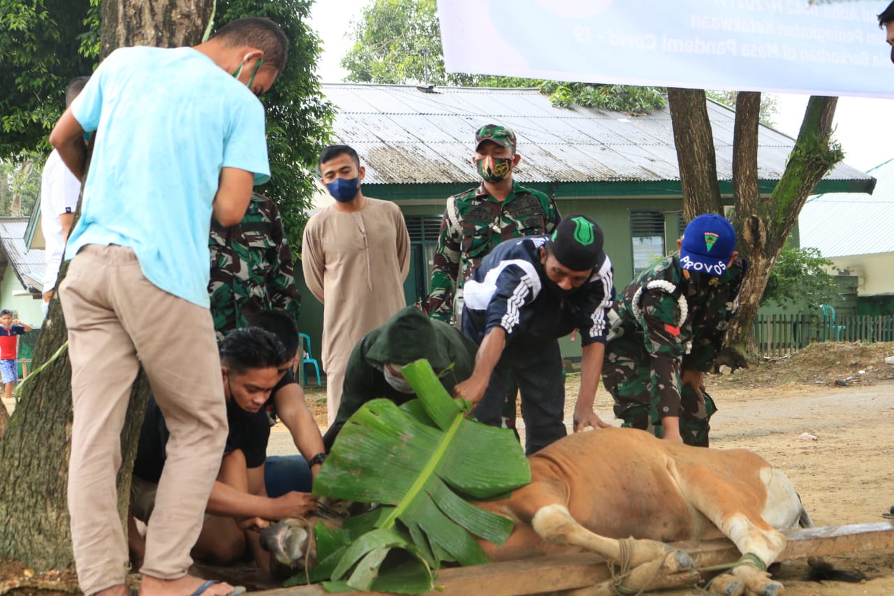 “Acara diawali dengan penyerahan hewan kurban kepada panitia kurban berupa 2 ekor sapi, saya menyampaikan bahwa kegiatan tersebut merupakan rangkaian dari perayaan Hari Raya Idul Adha 1442 H, setelah pemotongan hewan kurban dilanjutkan dengan pembagian daging kurban kepada masyarakat di sekitar asrama Kodim, tukang gali kubur, tukang becak dan pemulung yang berhak menerimanya di wilayah Kota Kendari,” jelas Dandim.