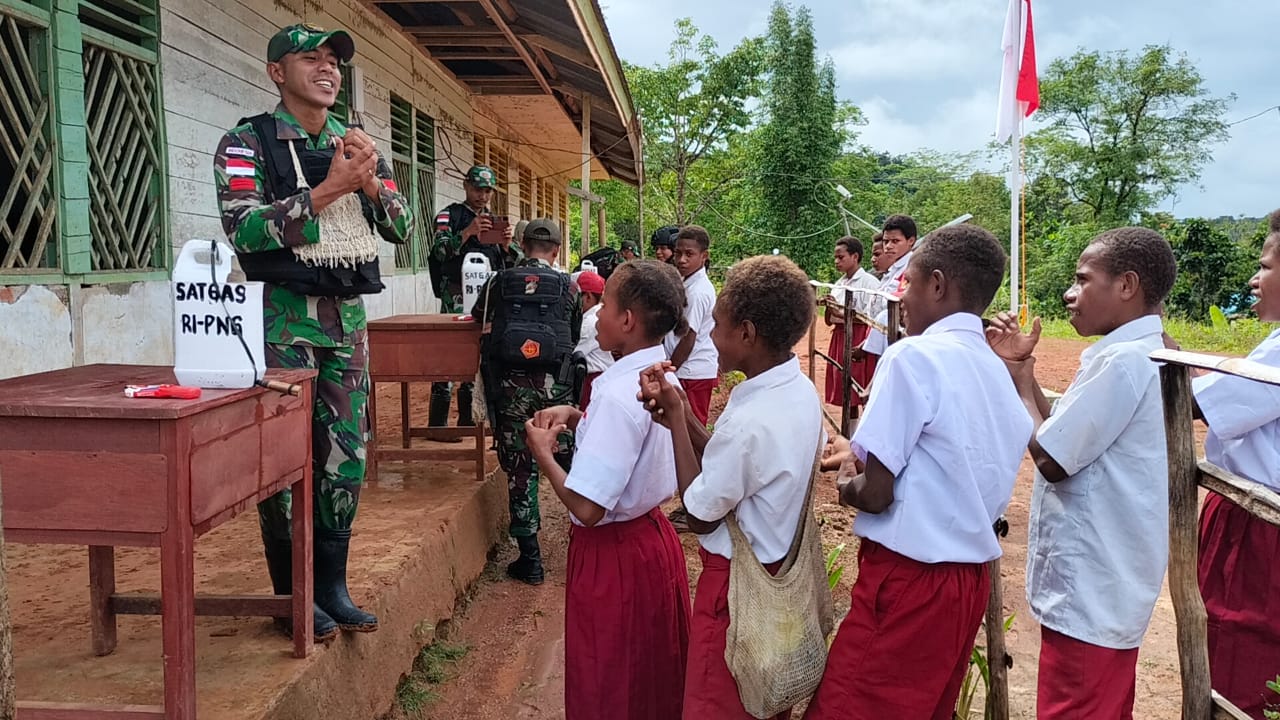 Di tempat terpisah, Dansatgas Yonif 725/Wrg Letkol Inf Syafruddin Mutasidasi, S.E., mengatakan disamping untuk memberikan pelayanan kesehatan juga untuk menanamkan budaya hidup bersih sejak dini kepada para siswa.