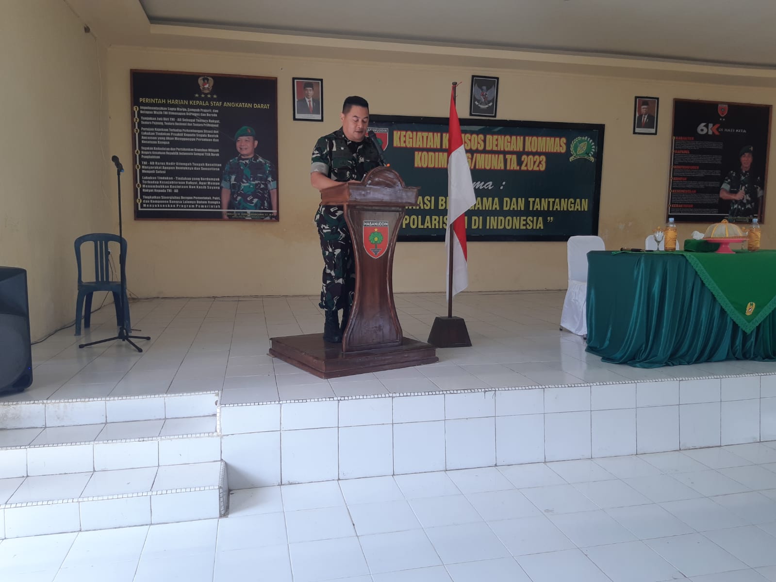 Komandan Kodim 1416/Muna Letkol Inf Gilles R.B Hogendorp, S.I.P mengatakan dalam kesempatan itu mengatakan, acara Komsos ini sebagai ajang silaturahmi antara TNI dengan elemen masyarakat . “Selain itu komsos ini akan terjalin sinergi antara TNI terutama Kodim 1416/Muna dengan semua unsur di wilayah Kabupaten Muna dan Muna Barat, guna membangun masyarakat Indonesia yang berkarakter dengan berlandaskan wawasan kebangsaan dalam rangka mewujudkan persatuan dan kesatuan Bangsa,” ujarnya.