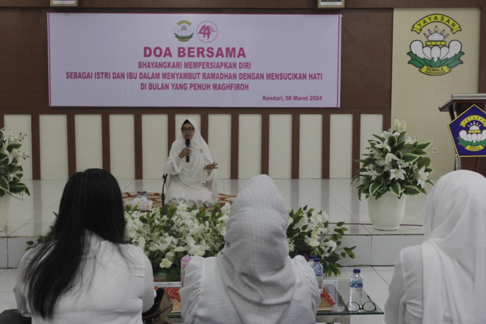 Sulawesibersatu.com – Kendari, 8 Maret 2024 – Menjelang bulan suci Ramadan, Pengurus Daerah Bhayangkari Polda Sulawesi Tenggara (Sultra) menggelar doa bersama dengan Bhayangkari Polres jajaran melalui Zoom Meeting, Jumat (8/3/2024). Kegiatan ini dipimpin langsung oleh Penjabat Ketua Bhayangkari Daerah Sultra Ny. Yuliati Dwi Irianto.