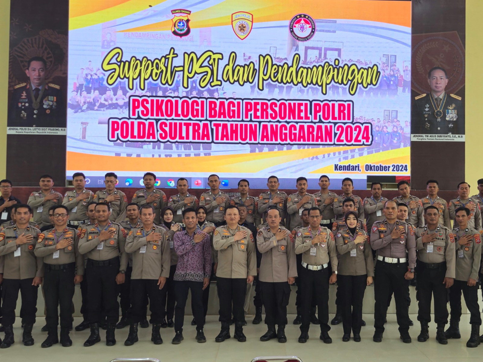Kendari ,Sulawesibersatu.com – Biro Sumber Daya Manusia (SDM) Polda Sulawesi Tenggara (Sultra) menggelar kegiatan bertajuk Support-Psi dan pendampingan psikologi kepada personel Polri Polda Sultra. Acara ini berlangsung pada hari Kamis, 24 Oktober 2024, di Aula Dharana Lastarya. Kegiatan ini bertujuan untuk memberikan dukungan psikologis kepada anggota Polri, guna menjaga kesehatan mental dan meningkatkan performa kerja mereka.
