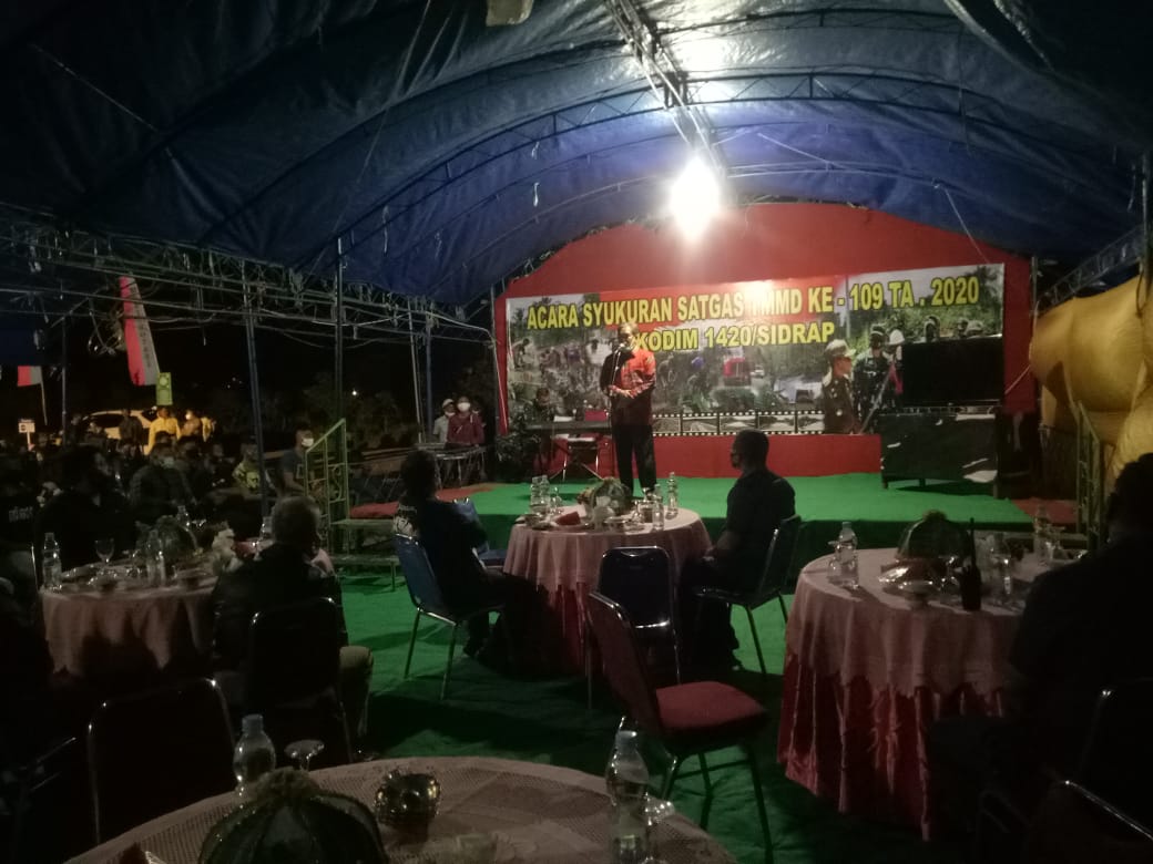 SIDRAP,Sulawesibersatu.com — Bupati dan Wakil Bupati Sidrap, H Dollah Mando – Mahmud Yusuf menghadiri syukuran TMMD ke-109, Selasa malam, 20 Oktober 2020.