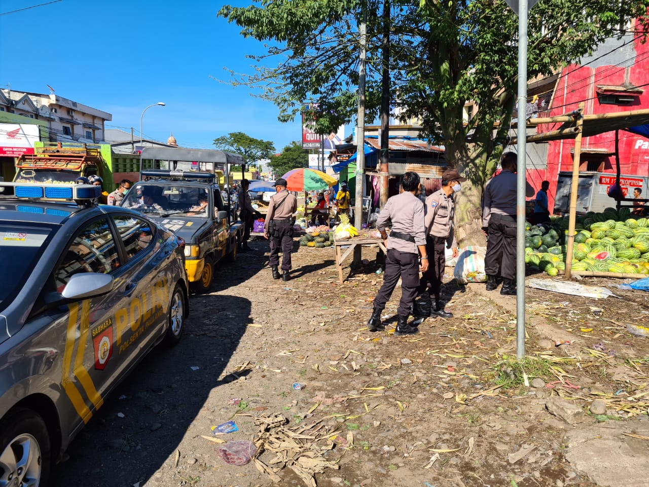 Kapolsek Pallangga bersama Wakapolsek IPTU Sulaiman, Kanit Sabhara IPDA Nurdin, Kanit Binmas AIPTU Syamsu Alam dan anggota Binmas melakukan himbauan kepada para penjual dipasar tumpah cambaya dan manggalli kecamatan pallangga agar menggunakan masker, menyediakan tempat cuci tangan dan tetap jaga jarak.