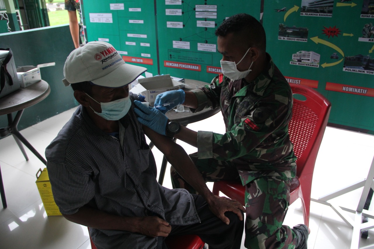 Letda Inf Fiqi menjelaskan, kegiatan serbuan vaksinasi tersebut merupakan bentuk dukungan seluruh satuan jajaran Korem 143/HO khususnya Yonif 725/Woroagi terhadap pemerintah Sultra dalam upaya penanganan Covid-19.