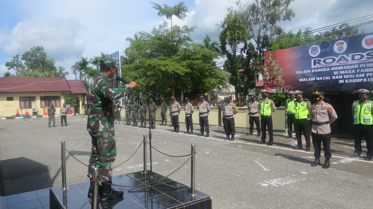 Kolaka,Sulawesibersatu.com – Dandim 1412/Kolaka Letkol Inf Risa Wahyu Pudji Setyawan BS.,M.Han menghadiri Apel Gabungan dalam rangka Roadshow himbauan penerapan Protokol Kesehatan di masa Pandemi Covid 19,malam natal dan pergantian Tahun baru tahun 2020 di halaman Mapolres Kolaka,Kel Watuliandu Kec Kolaka Kab Kolaka Rabu16/12/20.