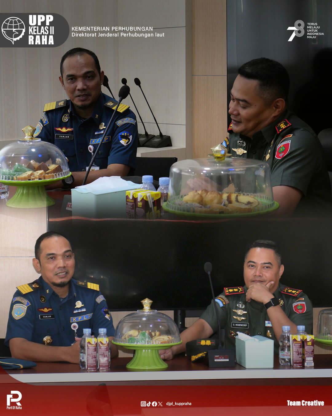 Selain itu, KUPP Kelas II Raha Hamjan meminta dukungan Bapak Dandim dalam penyelenggaraan tugas Syahbandar seperti pengawasan dan penegakan hukum di bidang keselamatan dan keamanan pelayaran, koordinasi kegiatan pemerintahan di pelabuhan serta pengaturan, pengendalian, dan pengawasan kegiatan kepelabuhanan.