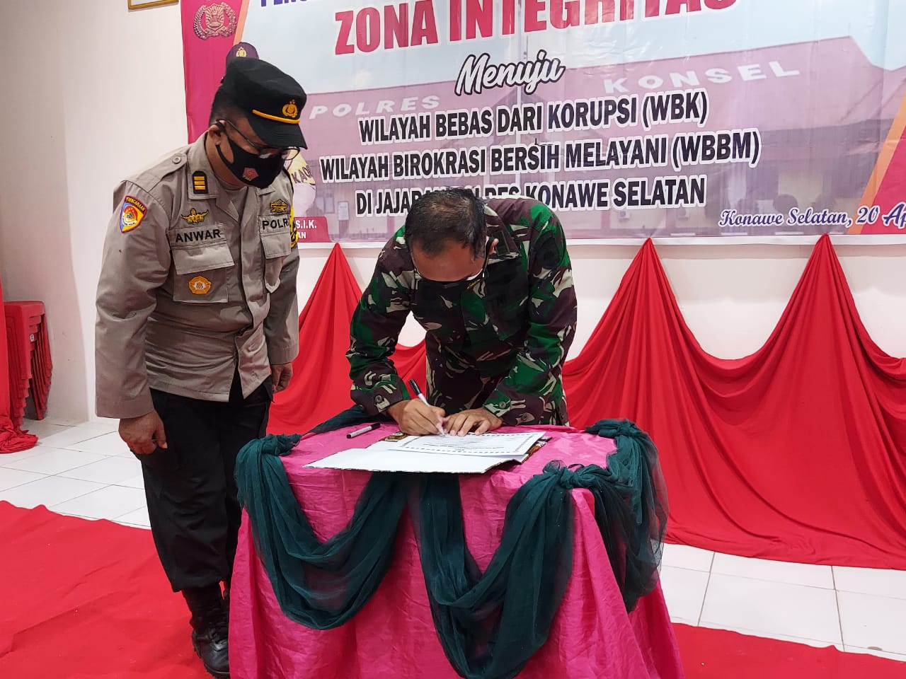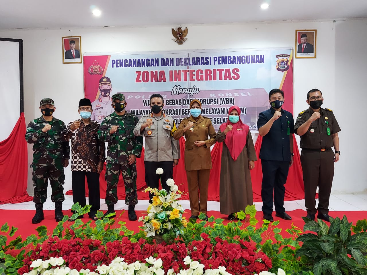 “Tindak lanjut dari keputusan bersama antara Kapolri dengan menteri pemberdayaan aparatur negara dan reformasi Indonesia nomor 01 tahun 2018 tentang tata cara pembangunan zona integrasi (ZI) menuju wilayah bebas korupsi (WBK) dan wilayah birokrasi bersih dan melayani,” kata Kapolres Konsel.
