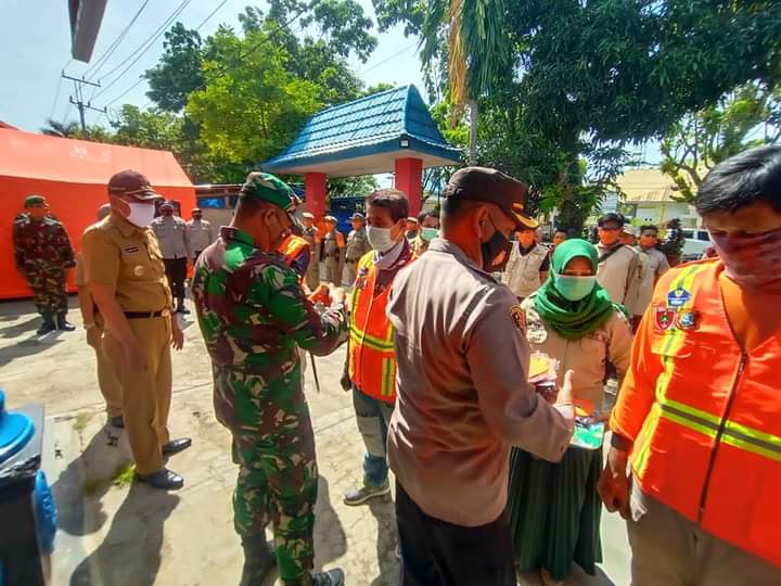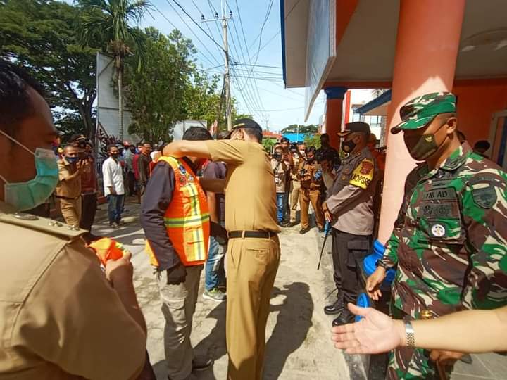 Bantuan Berupa Rompi,Masker dan Sanitiser diserahkan langsung oleh Bupati kolaka H.Ahmad Safei,SH.MH , di lanjutkan pemasangan Rompi Oleh Dandim 1412/Kolaka dan Kapolres kolaka dan Ketua BPBD.