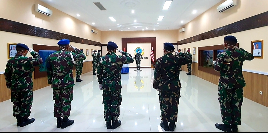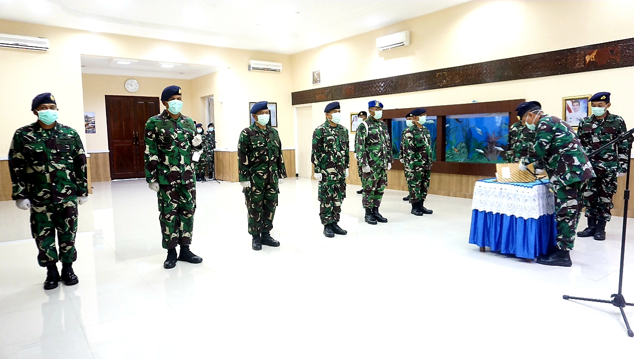 Dalam rangkaian acara tersebut, undangan dibatasi menyesuaikan tempat dengan jarak minimal 1,5 meter antar personel dan menggunakan masker medis dan sarung tangan karet sesuai Protokol Kesehatan, ujar Danlantamal VI.