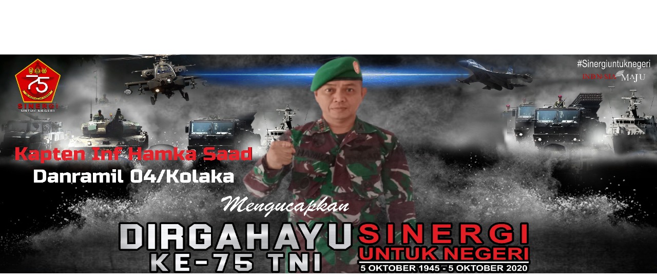 TNIDanramil 04/Kolaka Kapten Inf Hamka Saad Mengucapkan Dirgahayu TNI Ke-75 redaktursulawesibersatu@gmail.com5 tahun ago6 hari ago01 mins Danramil 04/Kolaka “Kapten Inf Hamka Saad” Mengucapkan: Dirgahayu TNI Ke-75 Sinergi Untuk Bangsa 5 Oktober 1945 – 5 Oktober 2020 Navigasi pos Previous: Presiden Jokowi Pimpin Upacara Peringatan ke-75 Hari TNINext: Denbekang XIV-44-03/ Kendari Mayor Cba Hamonangan Simanjuntak, S.E Mengucapkan Dirgahayu TNI Ke-75 Tinggalkan Balasan Batalkan balasanAlamat email Anda tidak akan dipublikasikan. Ruas yang wajib ditandai *Komentar * Nama * Email * Situs Web Simpan nama, email, dan situs web saya pada peramban ini untuk komentar saya berikutnya.