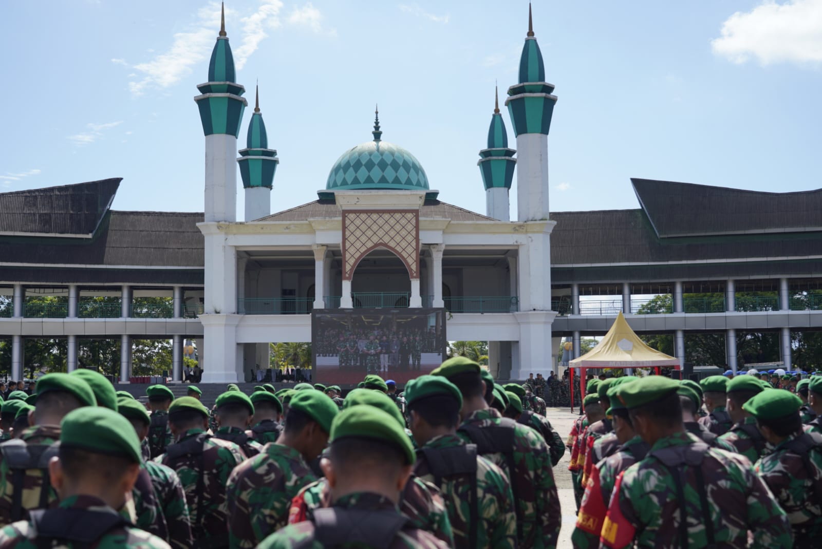 Kendari ,Sulawesibersatu.com– Komandan Korem 143/HO Brigjen TNI Ayub Akbar memimpin langsung apel gelar kesiapan prajurit TNI  pada PAM Pemilu tahun 2024 di Wilayah Korem 143/HO di lapangan MTQ Kota Kendari.