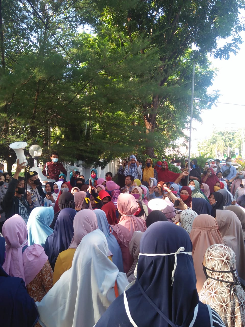 Aksi damai dengan pengawalan penuh dari kepolisian itu selesai pukul 10.30 pagi dan berharap agar Gubernur langsung menyelesaikan permasalahan ini. (Farid/Hairuddin)