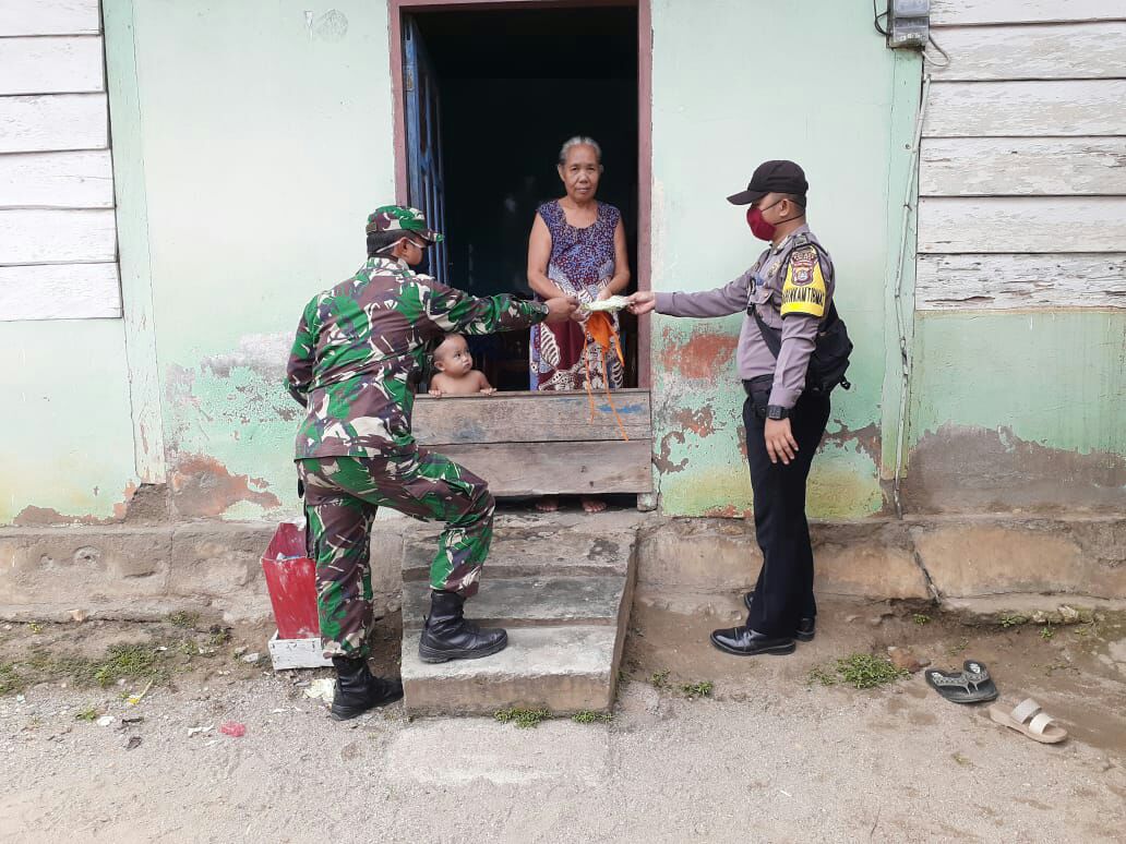 Kolaka,Sulawesibersatu.com – Koramil 04 /Kodim 1412 Kolaka Kapten Inf Hamka Saad  bekerjasama dengan unsur Terkait di wilayah binaannya Sesuai Arahan Dandim 1412 Kolaka Letkol Kav Amran Wahid ST MM menggelar bakti sosial dengan membagikan paket sembako Geratis kepada warga Kurang Mampu sebagai wujud kepedulian untuk meringankan beban warga yang sedang menghadapi pandemi virus corona (COVID-19) pada hari Sabtu 9/5/2020.