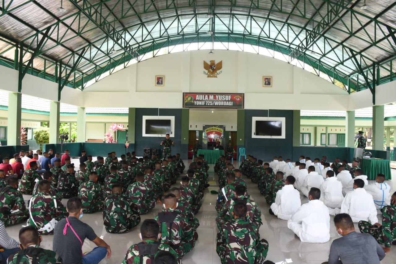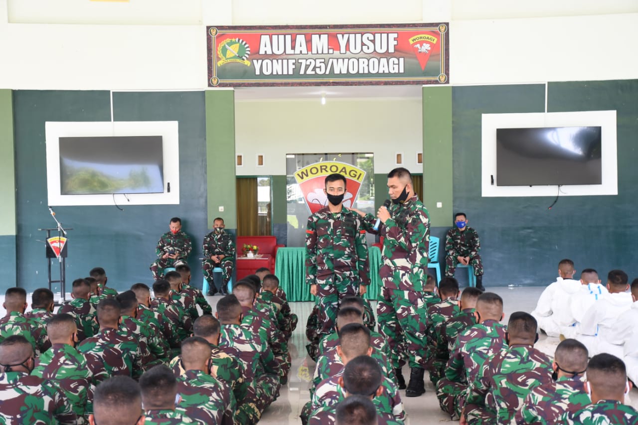 “Anggota Yonif 725/Wrg jangan mudah terpengaruh berita Hoax, selalu Pedomani ST Kasad No STR 428/2020 tanggal 18 Agustus 2020 ttg Pedoman Penggunaan Media Sosial, bijak dan sharing semua informasi yang kita dapatkan,” tegasnya.