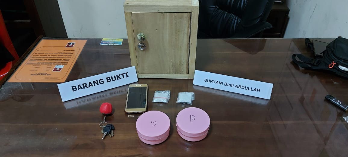 Pada Pkl 02.00 Wita Tim berhasil melakukan penangkapan terhadap perempuan yang berinisial S yang sedang berada didalam kamar Kostnya dan melakukan penggeledahan yang disaksikan oleh masyarakat setempat, dari hasil penggeledahan Tim berhasil menemukan barang bukti (BB) Narkotika sebannyak 2 (dua) Paket/sashet dengan berat Brutto 21,38 gram serta beberapa Barang Bukti yang ada kaitannya dengan peredaran gelap Narkotika Jenis Shabu.