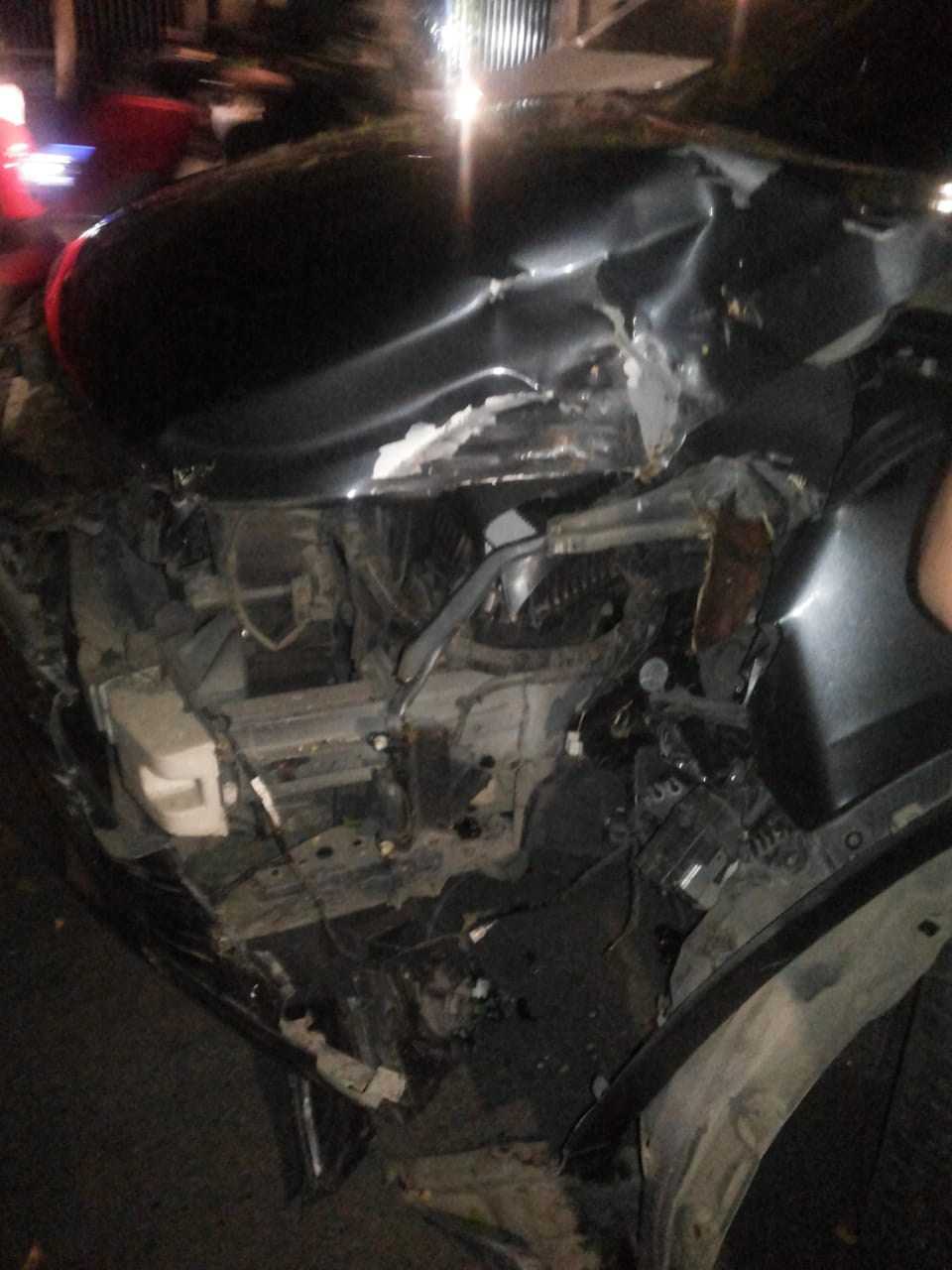 Sementrara itu Kendaraan roda empat Mazda CX 5 dengan nomor polisi 1188 QE yang dikendarai Dimas nampak penyok di bagian depan sebelah kirinya. “Saya tiba tiba mengantuk saat tiba di depan rumah jabatan Rektor UNM dari arah Barat, “ujar Dimas yang mengaku tinggal di Daerah Kabupaten Gowa Sulawesi Selatan.