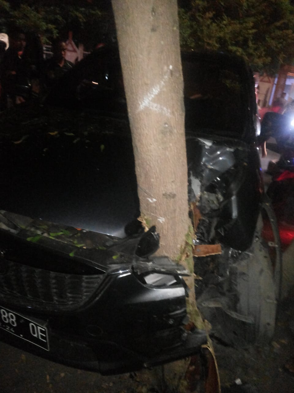 Makassar,Sulawesibersatu.com – Salah seorang Mahasiswa yang mengaku dari Fakultas Kedokteran UMI Makassar bernama Dimas menabrak sebuah pohon Jati di jalan Landak tepatnya di depan Rumah Jabatan (Rujab) Rektor UNM Senin (29/6) sekira pukul 19.30 malam.