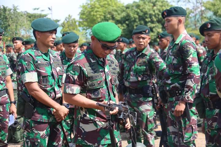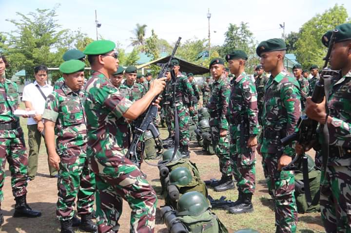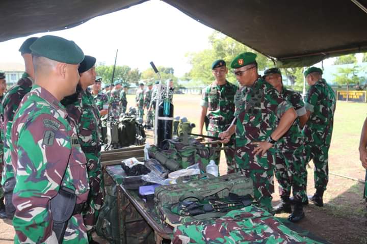 Usai menerima paparan, Pangdam bersama rombongan melaksanakan pengecekan kesiapan baik personel maupun materiil yang akan dibawa dan digunakan dalam penugasan seperti perlengkapan perorangan, sarana prasarana kesehatan, alat komunikasi, senjata dan perlengkapan lain yang diperlukan untuk menunjang kelancaran dalam melaksanakan tugas operasi pengamanan.
