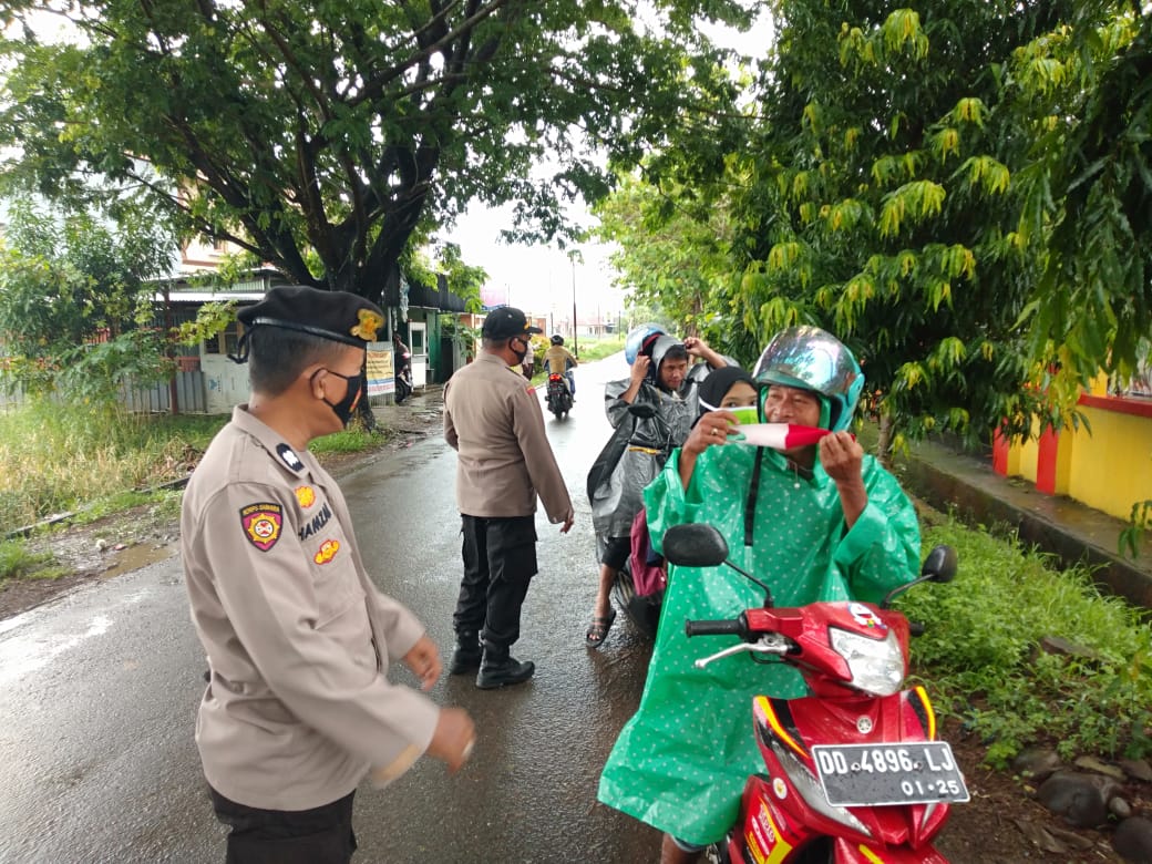 Nampak Akp Rusdi Tata dan Iptu Abdullah memberikan edukasi pada Masyarakat dan juga teguran bagi warga pengendara RD. 2 /RD. 4 yang tidak patuhi Protokol kesehatan dan kapolsek Barombong juga memberikan sanksi hukuman Fisik berupa Pust Up.