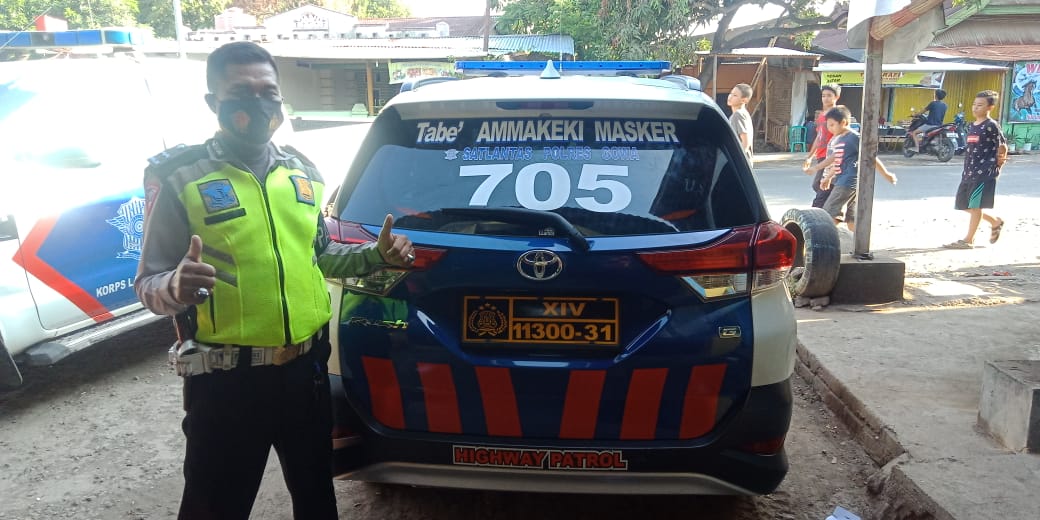 Kasat Lantas Polres Gowa AKP Mustari SH mengatakan pemasangan stiker dengan Tulisan TABE AMMAKEKI MASKER” pada kendaraan dinas R4 patroli, R4 Pengawalan , R4 dikyasa,dan R4 TP – TKP,serta praktek Uji SiM Lantas Polres Gowa