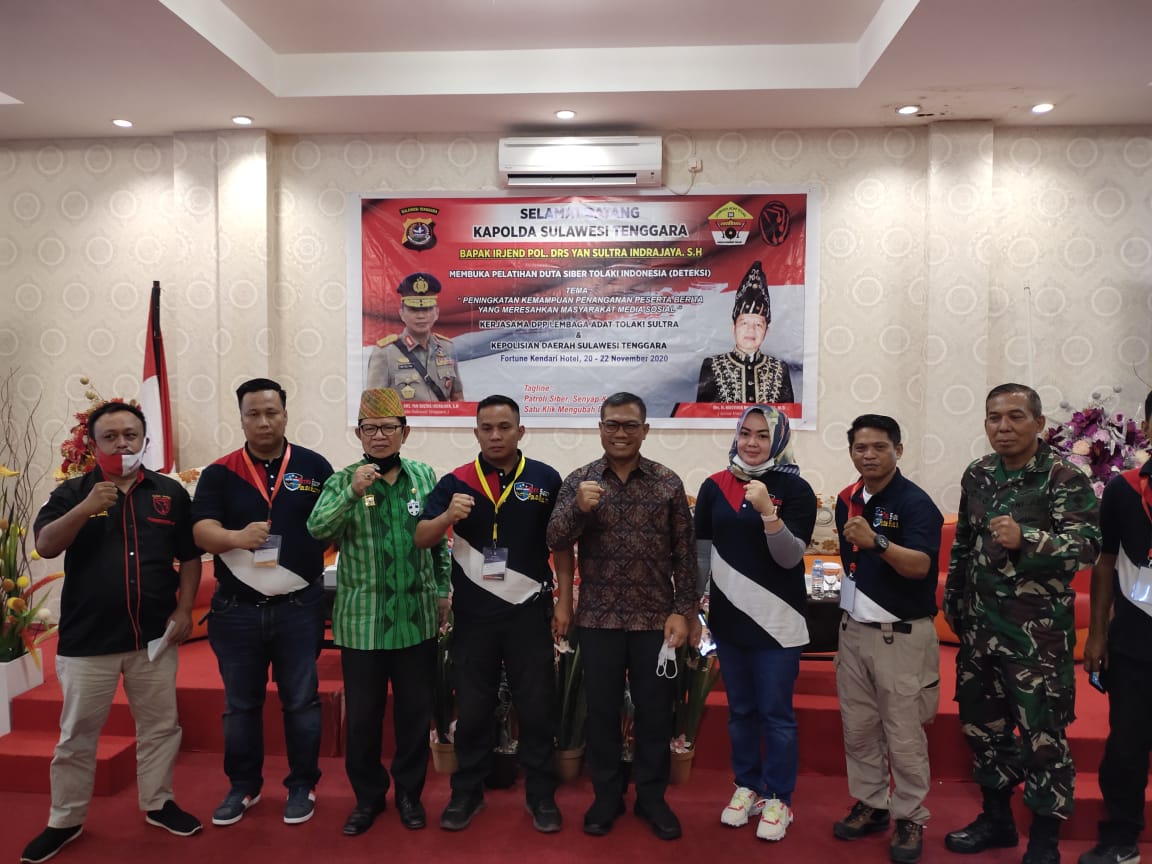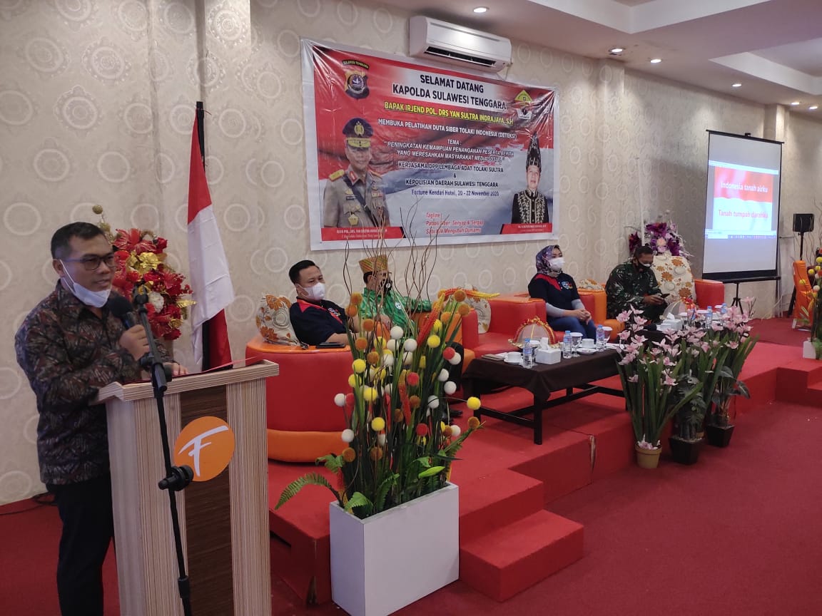 Tema yang diangkat dalam pelatihan Siber ini yakni Peningkatan Kemampuan Penanganan Pertama Berita Yang Meresahkan Masyarakat Media Sosial yang diselenggarakan atas Kerjasama DPP Lembaga Adat Tolaki Sultra dan Direktorat Reserse Kriminal Khusus Kepolisian Daerah Sulawesi Tenggara.