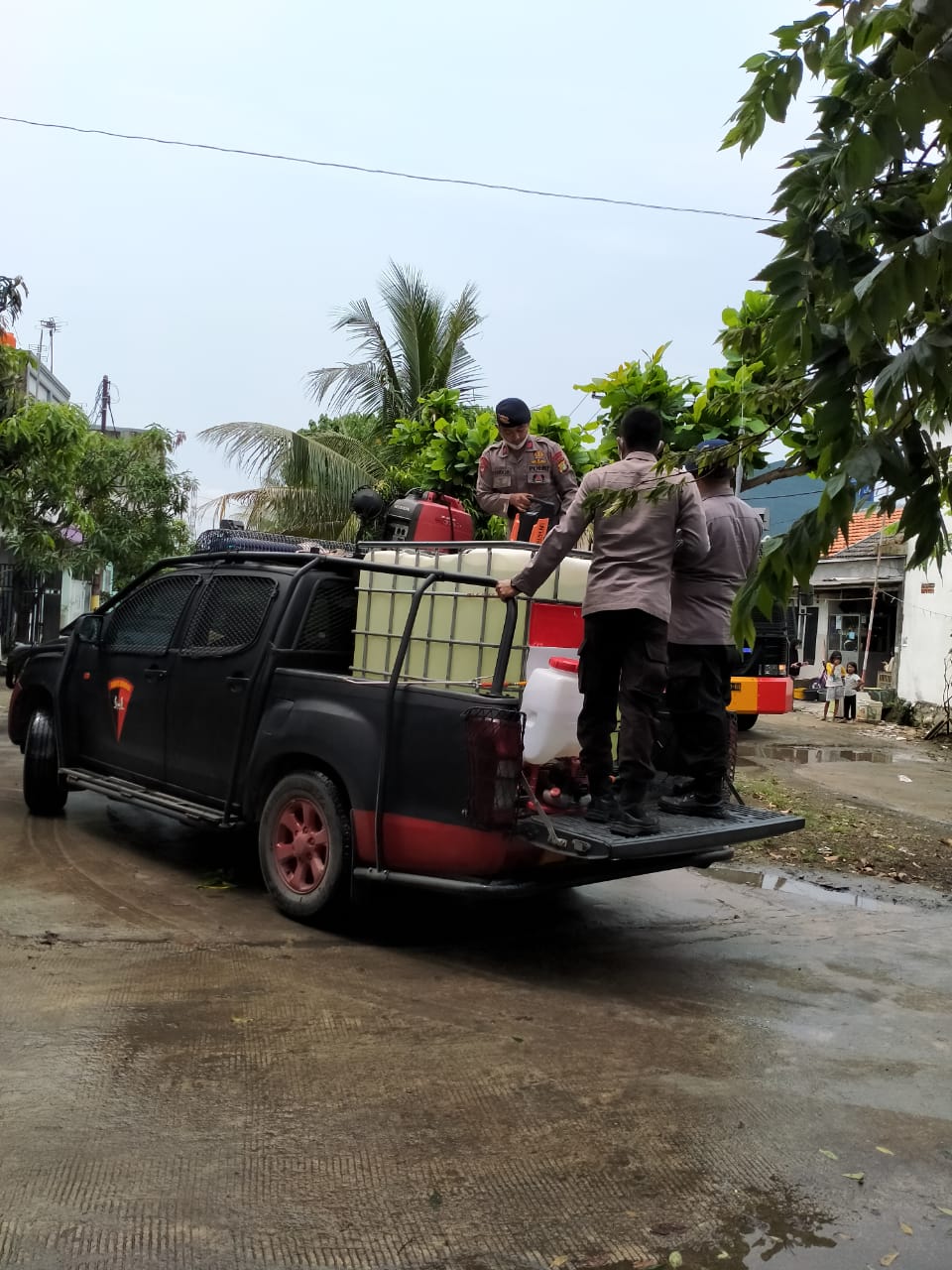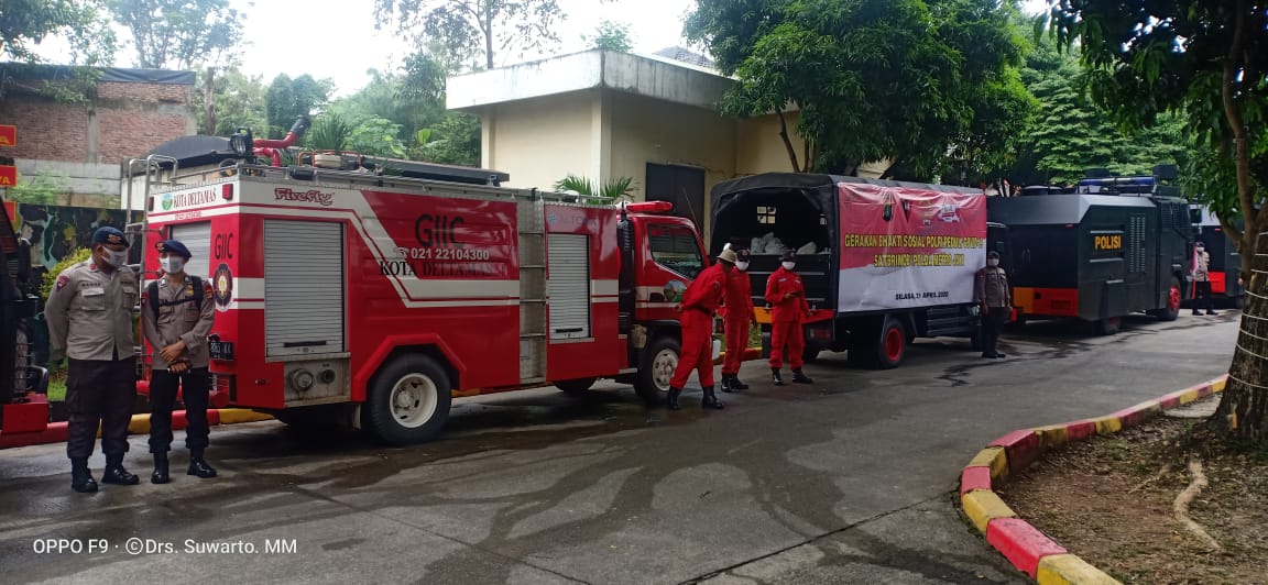 Kab.Bekasi,Sulawesibersatu.com – Satbrimob Polda Metro Jaya bersama pihak pengembang Kota Deltamas, Pundi Amal SCTV dan Bukalapak menggelar bhakti sosial pembagian sembako dan penyemprotan disinfectan di sekitar Mako Batalyon D Pelopor Satbrimob Polda Metro Jaya, Desa Hegarmukti, Kecamatan Cikarang Pusat Kabupaten Bekasi, Selasa (21/04/2020) pagi.
