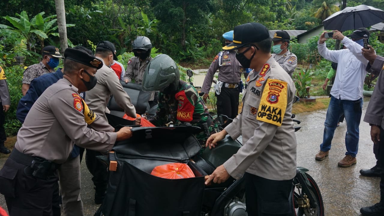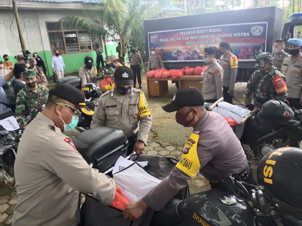 Sultra, Sulawesibersatu.com – Gerakan bakti sosial Polda Sultra dan Bhayangkari daerah Sultra peduli covid-19 kali ini melibatkan personel Bhabinkamtibmas dan Babinsa dengan membagikan sembako secara mobile menggunakan sepeda motor.