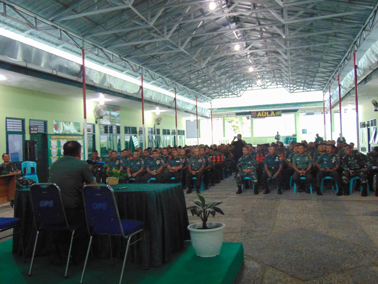 Komandan Kodim 1417/Kendari Kol Inf Drs Alamsyah M.Si memberikan jam komandan kepada seluruh Prajurit dan Pegawai Negeri Sipil (PNS) dan Persit Kodim 1417/Kendari di Aula Serbaguna Makodim usai pelaksanaan Upacara Bendera senin (9/3/2020)