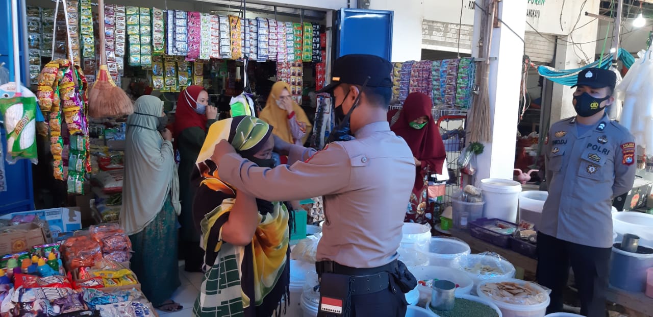 PASANGKAYU,Sulawesibersatu.com – Personil Polres Pasangkayu yang dipimpin Kanit Turjawali Sat Lantas IPDA Sofian memberikan penekanan kepada Penjual dan Pembeli di Pasar Smart Pasangkayu Serta Masyarakat yang didapati tidak menggunakan Masker di jalan Sam Ratulangi untuk tidak meremehkan Covid-19. Selasa Siang (9/2/2021).