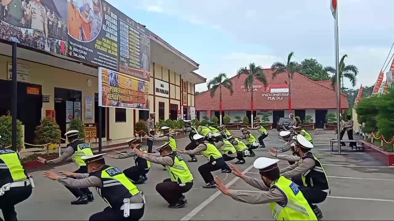 Gowa,Sulawesibersatu.com – Guna mencegah penularan covid 19, personil Sat Lantas Polres Gowa Rajin Gelar olahraga pagi sebelum pelaksanaan tugas,Selasa 06/10/2020 sekitar pukul 06.30 wita.