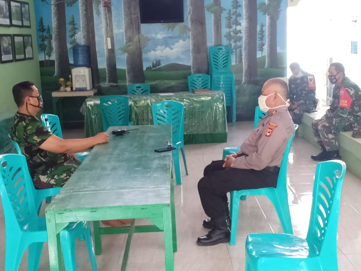 Gowa,Sulawesibersatu.com-Kapolsek Bajeng Polres Gowa Iptu Sunardi, SH, MH Koordinasi Kamtibmas dengan Koramil 06 Bajeng dalam rangka membahas persiapan jelang Lebaran Hari Raya Idhul Fitri 1441 H Tahun 2020 M, Rabu (20/05/2020) siang.