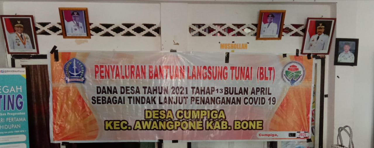 Kades Cumpiga, Andi Padauleng, A.Ma dalam sambutannya mengatakan, semoga BLT yang diterima hari ini dapat diterima secara tunai dengan masing-masing sejumlah Rp300.000,- (Tiga Ratus Ribu Rupiah) dan semoga penyerahan BLT Dana Desa ini bisa dimanfaatkan dengan baik agar dapat sedikit membantu memenuhi kebutuhan pokok sehari-hari, ”ucap Bu kades.