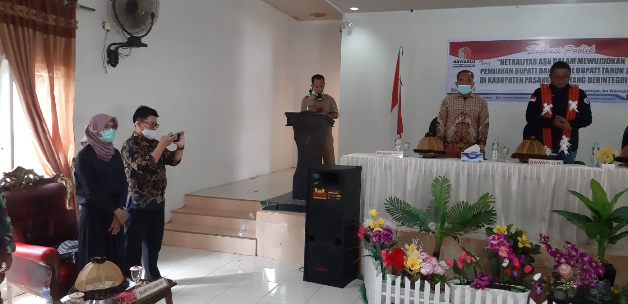 Diskusi Publik tersebut menghadirkan narasumber Divisi Hukum Bawaslu Republik Indonesia Fritz Edward Siregar S.H, L.L.M, P.Hd dan dihadiri oleh Ketua Bawaslu Sulawesi Barat Sulfan Sulu S.Pd.I, M.Si, Kordiv Bawaslu Propinsi DR. Fitri Patonangi, Ansarullah S.H, Kapolres Pasangkayu Akbp Leo H.Siagian S.I.K, M.Sc, Dandim 1427 Pasangkayu Letkol Inf.Novyaldi S.E, Asisten III Drs.Irfan Rusli Sadek M.Si, Ketua Bawaslu Kab.Pasangkayu Ardy Trisandy S.Pd, Para OPD dan Camat sekabupaten Pasangkayu serta Komisioner Bawaslu dan Pegawai Bawaslu Pasangkayu.
