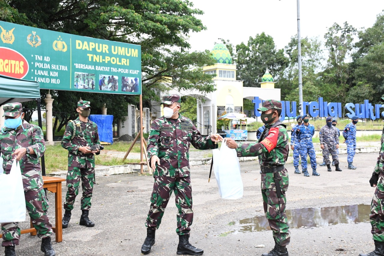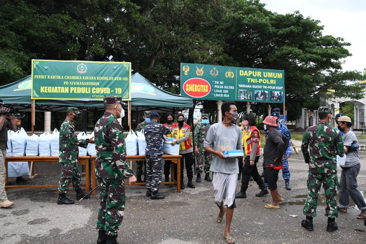 Hal ini diungkapkan Danrem pada kegiatan Dapur Umum Sinergitas TNI – Polri peduli Covid – 19 di Tugu Religi Sultra MTQ Jl. Abdullah Silondae, Kel. Mandonga, Kec. Mandonga, Kota Kendari, Prov. Sultra. Kamis (14/5/2020)