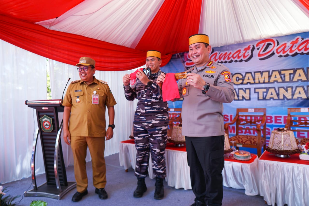 Pada persemian tersebut Kabarharkam Polri menyerahkan bantuan berupa 2 Set Solar Cell 2000 Watt, 10 paket alat budidaya rumput laut untuk 10 kelompok tani dan 45 bendera merah putih sebagai simbol semangat persatuan. (Rene Wijaya)
