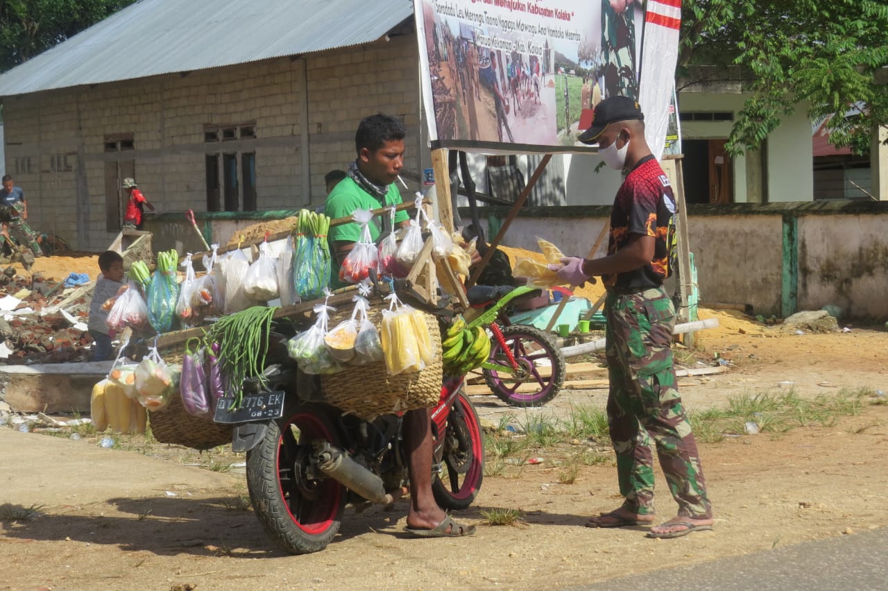 Kolaka – Pak Dede (35 Thn) beralamat di SP 1 Desa Anomenda Kecamatan Tohari, Kabupaten Kolaka,yang bekerja sebagai Penjual Sayur Keliling dengan sangat perduli nya ia kepada Satgas TMMD yang sementara melakukan pembangunan Rehab Masjid Nurul Amri di Desa Lamedai,penjual sayur tersebut terdorong untuk berbagi sedikit makanan di Lokasi pembangunan.
