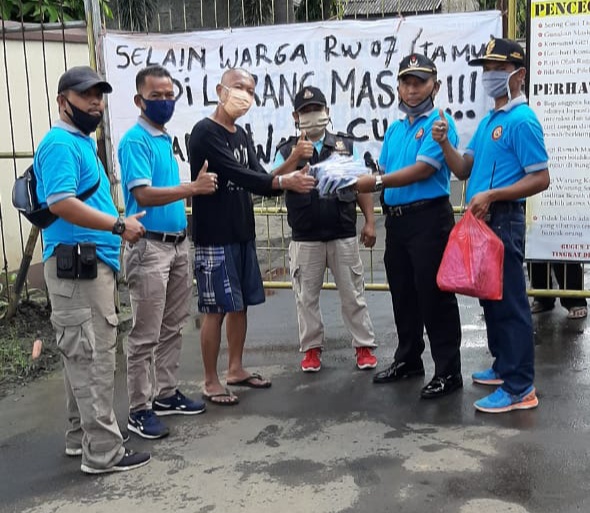Agus selaku ketua POKDAR Desa Lambang Sari, Kecamatan Tambun Selatan bagi – bagi masker 500 pcs terhadap warga lambang sari merupakan salah satu menjalankan kegiatan PSBB yang mana seluruh lapisan masyarakat wajib menggunakan masker baik yang berada dihalaman rumah dan juga yang melakukan kegiatan diluar rumah.