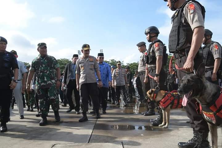 Makassar, Sulawesibersatu.com – Pangdam XIV Hasanuddin Mayjen TNI Surawahadi S.IP.,M.Si dan Kapolda Sulsel Irjen Pol Drs Mas Guntur Laupe menjadi Irup apel gelar pasukan Operasi Lilin 2019, bertempat di Lapangan Karebosi Makassar, Kamis (19/12) .