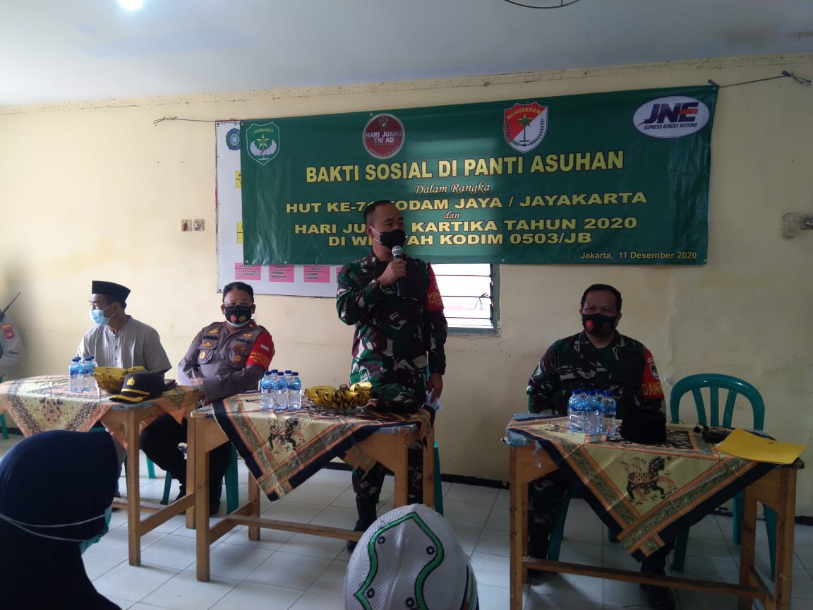 Dalam kesempatan tersebut, Dandim mengatakan Dengan adanya kegiatan Sosial ini saya berharap dapat membantu meringankan anak yatim shg masih tetap semangat untuk belajar menimba ilmu untuk bisa mandiri dikemudian hari dan kami mohon doa kepada Ade ade sekalian untuk TNI semoga keluarga besar TNI khususnya kodam jaya Jayakarta selalu diberikan kelancaran dan tetap Jaya dalam pelaksanaan tugasnya ,” kata Dandim.