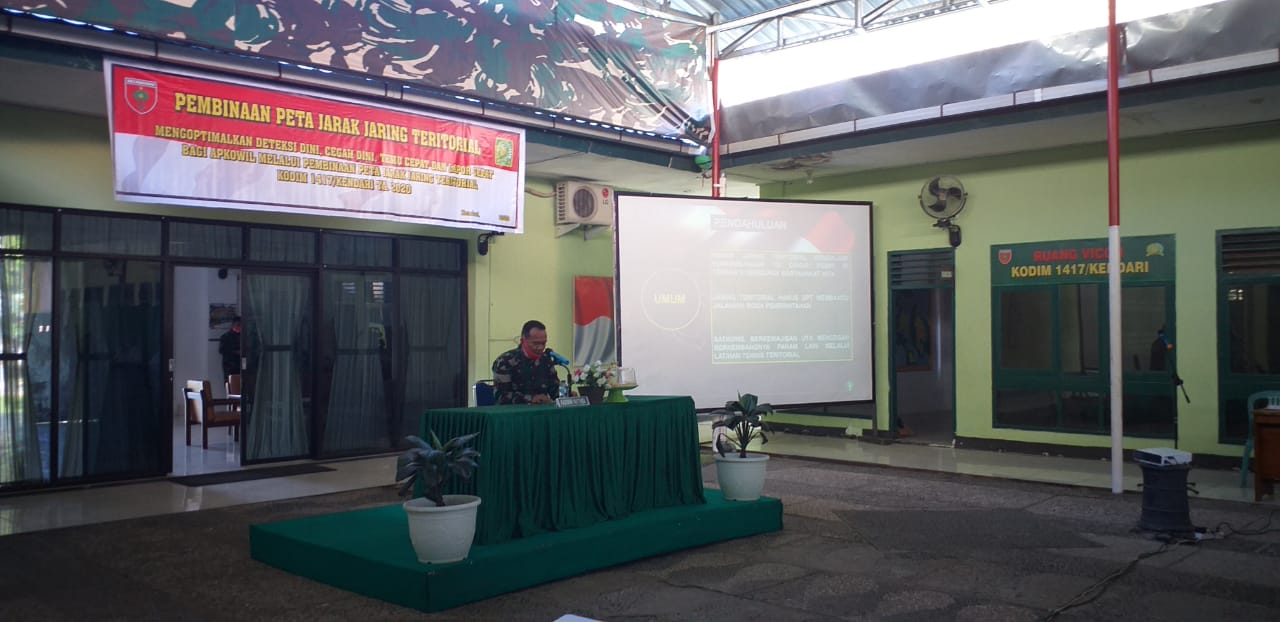 Kendari,Sulawesibersatu.com – Kodim 1417/Kendari menggelar Kegiatan Pembinaan Peta Jarak Jaring Teritorial yang bertempat di Aula Makodim 1417/Kendari, Jalan Sam Ratulangi, Kemaraya, Kendari Bar., Kota Kendari Kamis (10/09/2020).