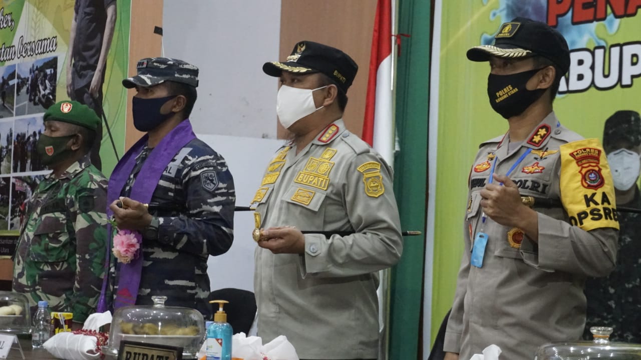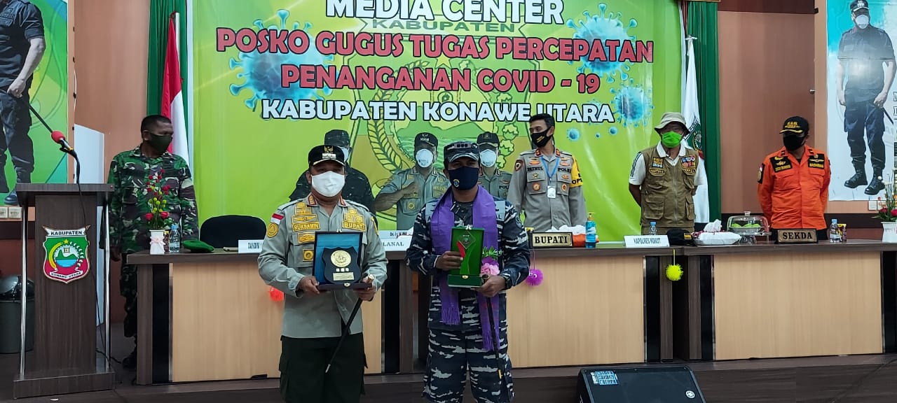Konawe Utara,Sulawesibersatu.com – Bertempat di Kantor Dinas Kesehatan (Posko Gugus Tugas Percepatan Penanganan Covid – 19 Kab. Konawe Utara) Danlanal Kendari Kolonel Laut (P) Andike Sry Mutia, S.Sos melaksanakan silaturahmi, yang disambut oleh Bupati Konawe Utara Dr. Ir. H. Ruksamin ST, M.Si, IPM, ASEAN Eng. dan disambut dengan tarian adat Suku Tolaki yaitu tarian Mondotambe (tarian selamat datang) yang merupakan simbol diterimanya Danlanal Kendari sebagai warga kehormatan Kabupaten Konawe Utara.