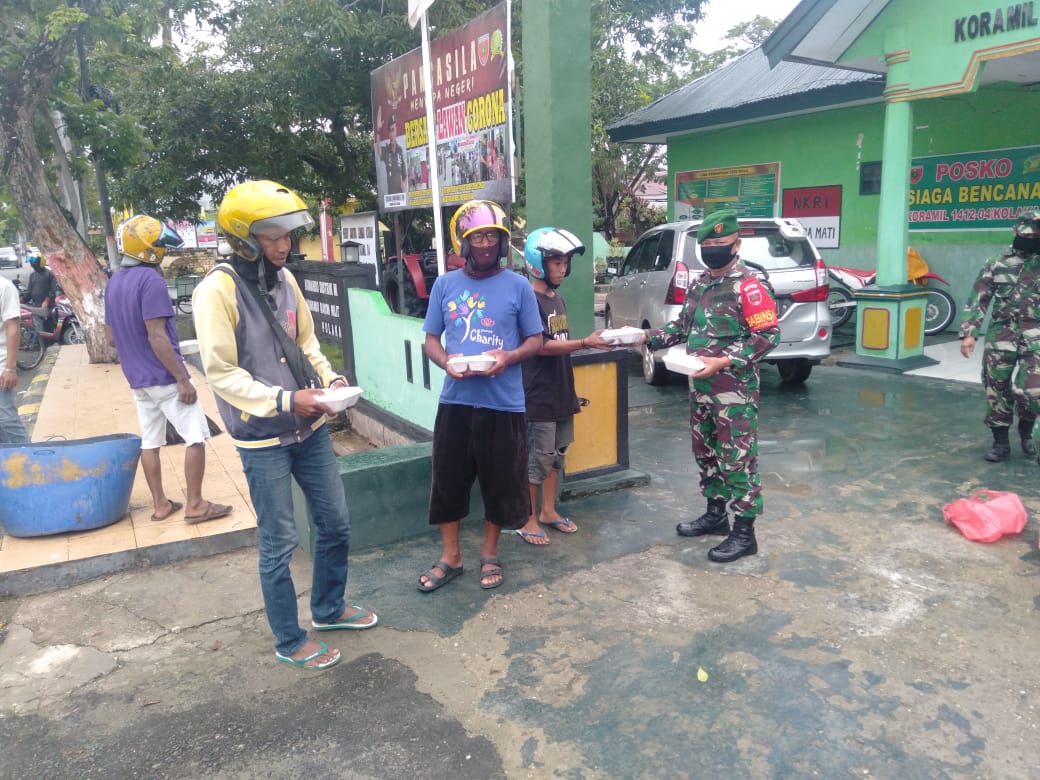 Koramil 04 Kolaka di bawa Komando Kapten inf Hamka Saad melakukan kegiatan peduli kemanusiaan di makoKoramil 04 kolaka dengan membagikan sejumlah makanan buka puasa kepada warga disaat menunggu waktu berbuka puasa.(22/05/2020)