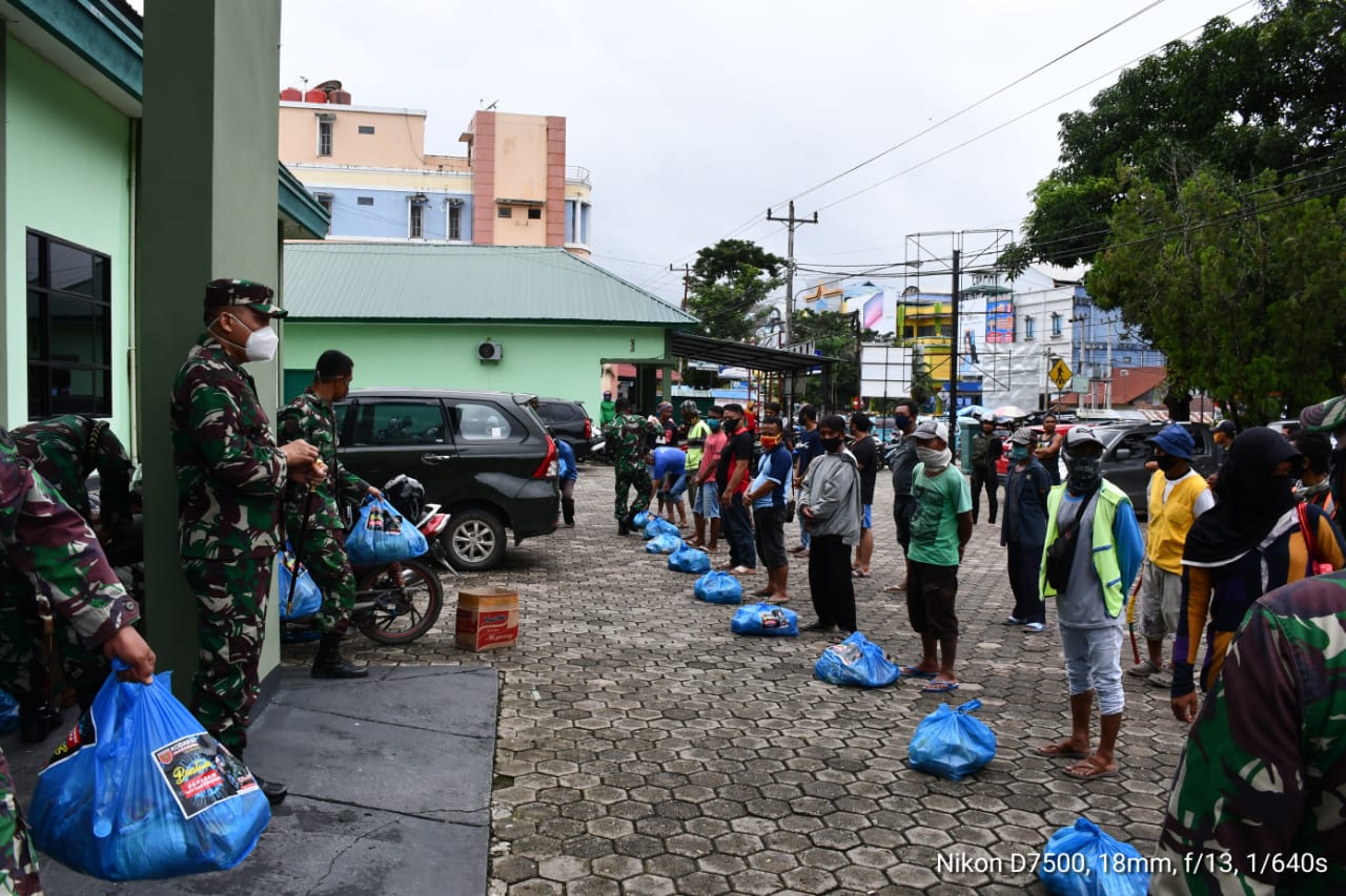 Pelaksanaan penyaluran bantuan dilaksanakan di Aula Sudirman Korem 143/HO, Kota Kendari dan di Jl Ade Irma S Nasution, Watubangga, Baruga, Kota Kendari. Sabtu (16/5/2020).